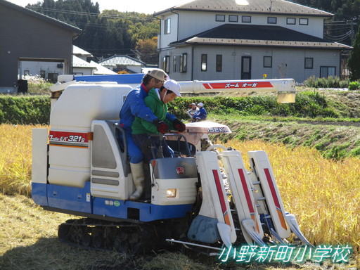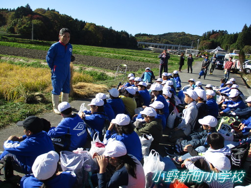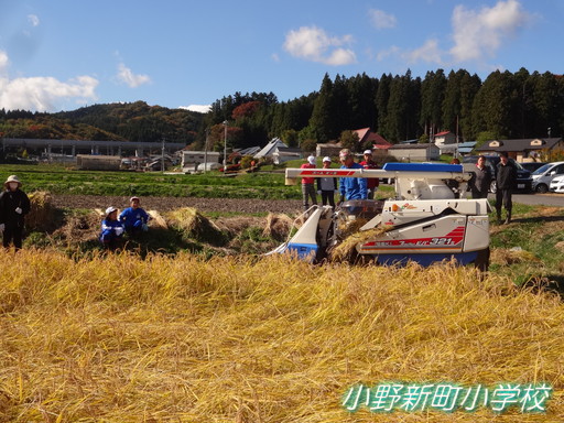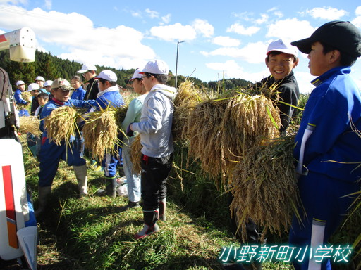 10月30日に、本校の学習田でご指導をいただいている村上さんのご指導のもと、5年生が稲刈りを行いました。