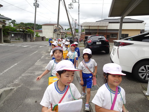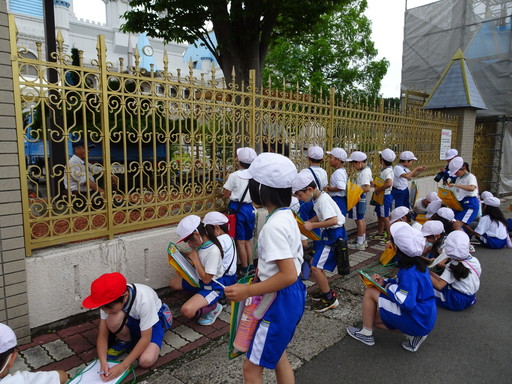 本日2年生は、生活科の学習で町探検に行って来ました。今回は、全員で歩きながら町の施設やお店などの場所を確認しました。普段住み慣れている地域でも改めて歩いてみると、「ここにはこんなところがあったんだ!」と新たな発見もあったようです。2学期は、今回の学習を生かして、グループごとに町探検に出かける予定です。
