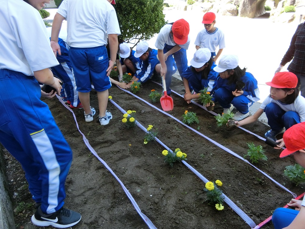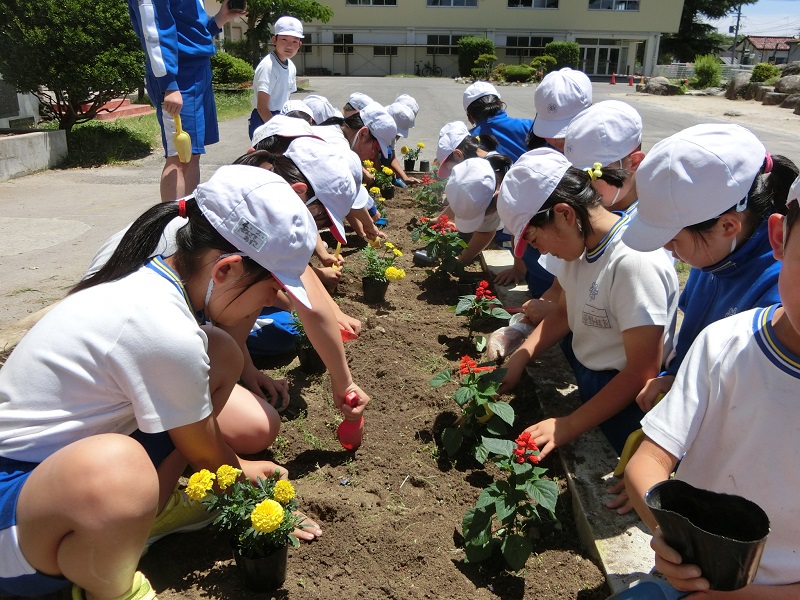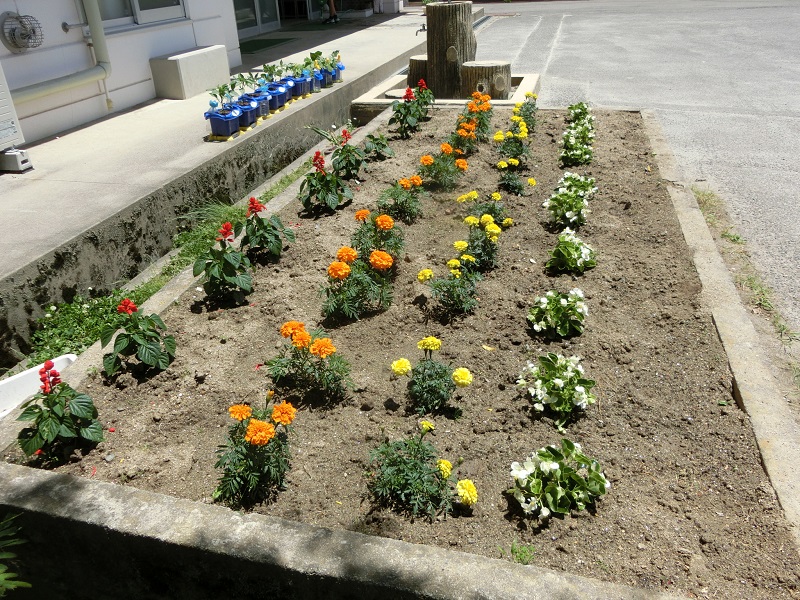6月8日に、人権擁護委員の皆様が来校し今年も「人権の花」を寄贈いただきました。その苗を学年ごとに分担して花壇に植えていき、このほど完了しました。大きくなって、学校環境に彩りを添えてくれることでしょう。ありがとうございます。大切に育てていきます。