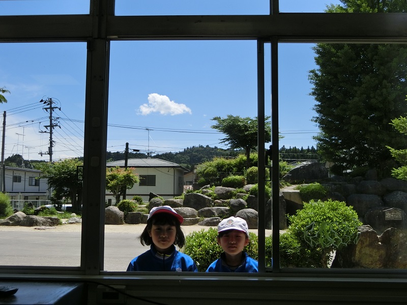 昼休み、遅い昼食をとっていると、3年生の子が窓辺に顔をのぞかせて言いました。「校長先生、岩石園のハチの巣の駆除は終わりましたか?」。「はい、教育委員会の方が駆除してくださいましたよ」。「じゃ、岩石園で遊んでもいいですか?」。「いいですよ」。「ありがとうございました。お食事中失礼しました!」。「すてきな言葉ですね」とほめてあげました。とてもいい気持になりました。すると今度は、また別の3年生の子が二人窓辺に立っています。先ほどと同じことをたずねてきました。最後に、この二人が声をそろえて言いました。「ありがとうございました。お食事中失礼しました!」。どこでこんなすてきな言葉を覚えたんだろうと思いながら、気持ちがほっこりし給食が一段とおいしくなったのは言うまでもあります。