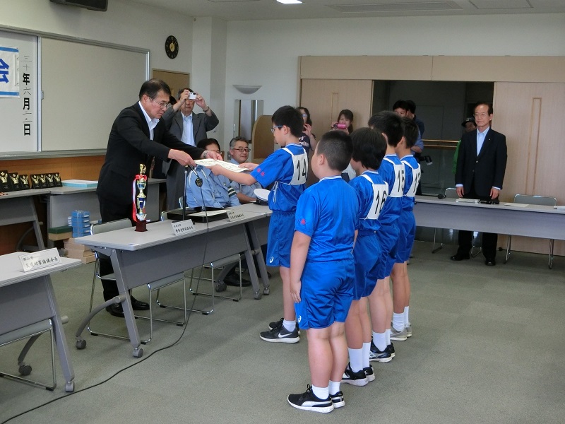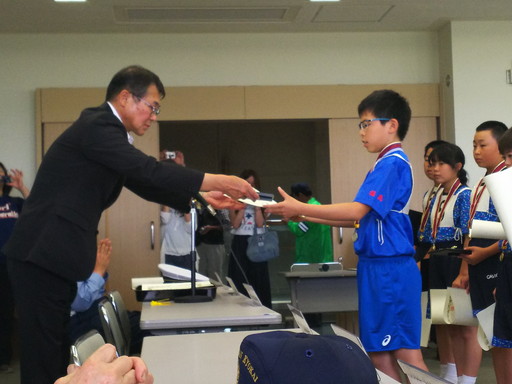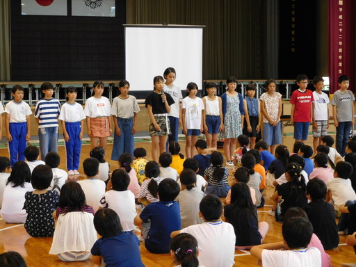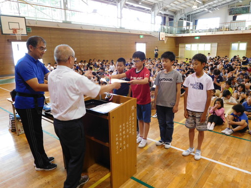 授与終了後は、県大会に出場する陸上部と自転車部児童の壮行会が行われました。県大会での子どもたちの活躍を期待しています。