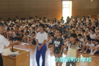 校長先生からは、「お(おさない)・か(かけない)・し(しゃべらない)・も(もどらない)・ち(ちかづかない)」をしっかりと頭に入れて避難すること、そして、自分の命は自分で守ることのお話がありました。
