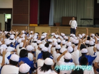 さらに、昼休みには児童だけでなく教職員にも予告せずに2度目の避難訓練を行いました。校庭や前校庭で遊んでいた児童や、教室でのんびりしていた児童、体育館で集会を行っていた児童など、場所も活動もばらばらでしたが、速やかに校庭に避難することができました。