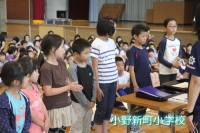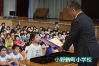始めに、自転車県南方部大会で団体・個人で入賞した自転車部の児童や、陸上競技大会田村地区予選で入賞した陸上部の児童の表彰を行いました。また、郡山市少年空手道選手権大会で入賞した児童や、カワイうたのコンクール東北大会で金賞を受賞した児童も表彰しました。たくさんの児童の活躍に全校生から温かい拍手が送られました。