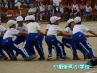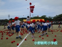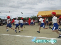 運動会の花形である紅白リレーでは、上学年・下学年ともに気迫のこもった走りを見せてくれました。チームの勝利のために必死で走る子どもたちの姿に感動しました。