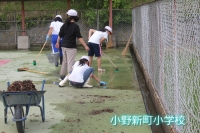 6月から始まる水泳学習に向けて、6年生がプールの清掃を行いました。