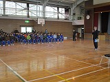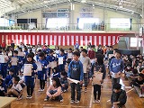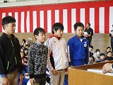 最後に「校内なわとび大会」の表彰です。持久跳びの合格者と技跳びの入賞者が紹介され,技跳びで各学年男女1位になった児童が代表で表彰されました。