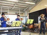 本日お昼休みに吹奏楽部がアンサンブルコンサートを行いました。6年生の金管楽器担当者がトロンボーン3重奏,木管楽器担当者がサックス・クラリネット2重奏を演奏しました。
