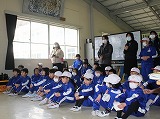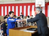 続いては,「平成27年度福島県小学校陸上競技10傑章」です。これは,今年度行われた陸上競技大会において優秀な成績を収めた児童に贈呈されるものです。男子4×100mリレーに出場した男子児童4名が受章しました。