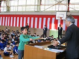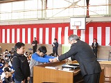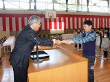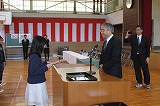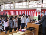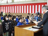 本日4校時に修了証書授与式を行いました。学年が呼ばれると,学年全員で声を合わせ,大きな声で返事をしました。5年生の代表児童が校長先生から修了証書を受けとりました。