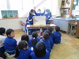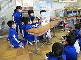 本日2校時,2年生が1年生を招待して,紙芝居「ニャーゴ」の発表を行いました。手作りの紙芝居と,身振りや手ぶりをつけた読み聞かせに,1年生は聞き入っていました。
