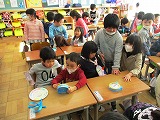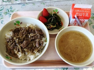 子どもたちからは,「大きいお肉が入っていて,味が濃くておいしかったです。」や「いちごが甘くてとってもおいしかったです。」などの声が聞かれました。
