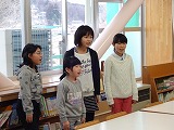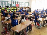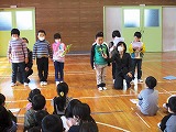 全校での豆まき集会は放送で行いました。5・6年生の各クラスの代表児童が追い出したい鬼とその理由を発表しました。各クラスでは放送をよく聞いて,出されるクイズに真剣に答える様子が見られました。
