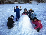 本日の4校時に1年生が校庭で雪遊びをしました。学年のお友達と仲良く雪だるま作りやそりすべりを行いました。