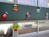 杉の子・あすなろ学級の前には,節分に関連したかわいい掲示物が貼られています。
