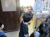 本日13時55分より「新入学予定児童一日体験入学」を行いました。一年生が新入生を案内し,校舎内の探検や教室での交流会を行いました。