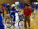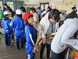 本日3年生が特設部活動見学を行いました。4つの班に分かれて,「陸上部」・「吹奏楽部」・「合唱部」・「自転車部」の4つの特設部を回って見学や体験をしました。