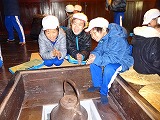 文化の館の郷土資料館には,昔の農機具や移築された民家など,昔の小野町の人々のくらしがわかる資料がたくさん展示されています。子どもたちは,文化の館の職員さんの話をよく聞いたり,メモを取ったりしながら熱心に学習に取り組みました。