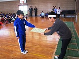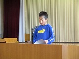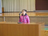 まず始めに1・3・5年生から「2学期の反省と冬休みのめあて」について作文の発表がありました。3人とも全校生の前で,元気よく上手に発表することができました。