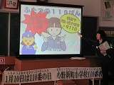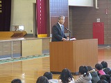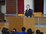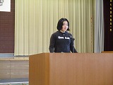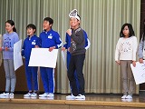 まず始めに2・4・6年生から「冬休みの思い出と3学期のめあて」について作文の発表がありました。3人とも全校生の前で,元気よく上手に発表することができました。