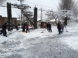 雪かきと一緒に「おはようございます。」と,登校してくる下級生に元気にあいさつをしていました。