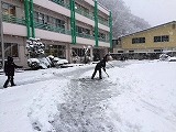 本日は未明からの雪で学校の周りに10cmほど雪が積もっていました。6年生は朝登校すると素早く着替えなどを済ませ,自主的に校舎前の雪かきを行いました。