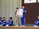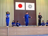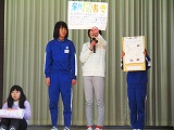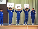 ふれあいスポーツ委員会は,活動内容に関するクイズや,なわとびの発表を行いました。
