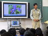 子どもたちからは,「ハチが受粉しやすいように花の形ができているなんてびっくりしました。」,「学校の裏山にムササビの巣を見つけました。」などの声が聞かれました。身の回りの身近な森林の中にも様々な動植物がいて,互いに助け合って生きていることに気づくことができました。横田先生ありがとうございました。