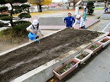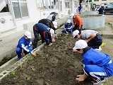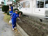 本日お昼の時間に5年生が花の苗・球根植えを行いました。校舎前の花壇にチューリップの球根と,ノースポールと金魚草の苗を植えました。全員で協力してきれいに素早く植えることができました。