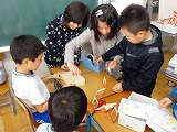 2015年12月8日 10時30分 本日2年生が生活科の学習で「おもちゃ教室」を行いました。1年生を2年生の教室に招待し,「パッチンガエル」や「ロケットポン」などの作り方や遊び方を優しく教えてあげることができました。