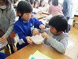 本日2年生が生活科の学習で「おもちゃ教室」を行いました。1年生を2年生の教室に招待し,「パッチンガエル」や「ロケットポン」などの作り方や遊び方を優しく教えてあげることができました。