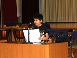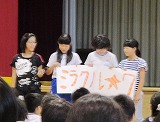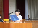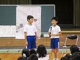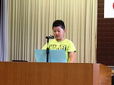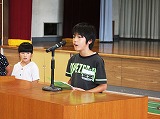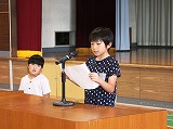 初めに代表児童による作文発表がありました。全校生の前で元気よく発表することができました。