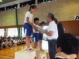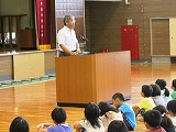 続いて校長先生から1学期中の子どもたちの頑張っていた姿の紹介がありました。最後に「2学期の始業式には,日焼けした元気な姿で会えることを楽しみにしています。」というお話がありました。