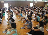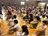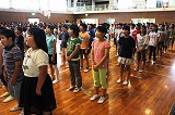 全校生がきちんとした姿勢で集中して話を聞くことができました。校歌も大変元気よく歌うことができました。1学期の学習の成果が子どもたちの式に臨む態度に表れていました。