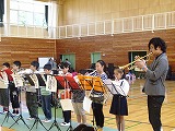 午後は楽器ごとの練習成果発表と全体合奏を行いました。全体合奏は講習会に参加した150人全員で「線路は続くよどこまでも」を演奏しました。大変迫力のある演奏でした。