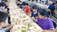 今年も5年生を対象にバイキング給食が行われました。いつもとは違う食事形態に少し緊張気味でしたが、食事のマナーなども学び、楽しい食事の時間となりました。いつもおいしい給食に加え、この日だけの特別なメニューに子どもたちの目はキラキラと輝いていました。好きなものばかりではなく、きちんとバランスを考えながら選んでいる姿も見られました。お腹も心も満たされた時間でした。