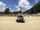 運動会に向けて,応援団がお昼休みに練習を行っています。校庭の端から端まで届くような大きな声が出せるように,一生懸命練習をしていました。