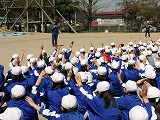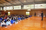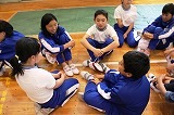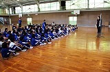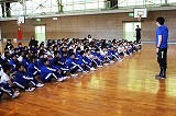2015年5月7日 13時30分 来週から縦割り班による一斉清掃が始まります。本日お昼の時間に5・6年生が体育館に集まり,顔合わせと清掃の仕方の確認を行いました。