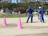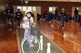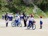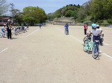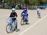 中・高学年は,「自転車の点検の仕方」や「路上での交通ルール」について,校庭の練習コースを走行しながら確認しました。