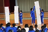 来週から縦割り班による一斉清掃が始まります。本日お昼の時間に5・6年生が体育館に集まり,顔合わせと清掃の仕方の確認を行いました。