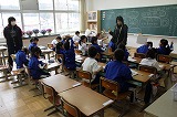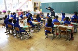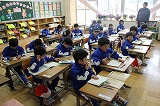 2校時に1年生の教室をのぞくと,算数の学習をしていました。教科書の挿絵にある動物の数を数えたり,担任が黒板に書いた文字をノートに写したりと,一生懸命学習に取り組んでいました。