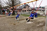 本日の昼休みは久しぶりに晴れ,たくさんの子どもたちが外で元気よく遊んでいました。1年生は2年生と一緒においかけっこをしたり,6年生のお姉さんたちと遊んだりしていました。