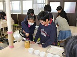 ガスコンロの使い方やお茶の入れ方について担任の先生と学習した後,上手に実習を行うことができました。子どもたちからは「苦かったです。」や,「温かくて落ち着きました。」などの声が聞かれました。