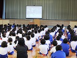 フリップを使ったり,クイズを作ったりしてわかりやすく説明をすることができました。また,活動内容だけでなく「やりがい」や「活動していてうれしかったこと」,「今年度取り組みたいこと」などについても発表しました。5年生は目を輝かせながら6年生の発表を聞いていました。