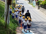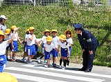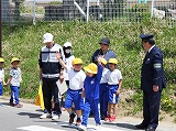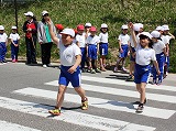 全体指導の後は低学年が,学校周辺で「安全に歩行する練習」を,中・高学年が校庭で「自転車の実技練習」を行いました。低学年の歩行練習では,横断歩道で左右をよく確認したり,手をあげて横断したりしながら,正しい道路の歩き方を練習しました。