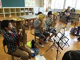 吹奏楽部がいわき市の植田小学校で行われた「楽器別講習会」に参加しました。この講習会は,楽器別にプロの演奏家の方に音の出し方や練習の進め方を教えていただくものです。