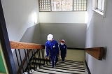 西側の壁面改修・塗装工事が完了し,各階廊下・3つの階段の工事が終了いたしました。久しぶりに仕切りが外され,全ての廊下・階段が利用可能になりました。