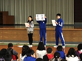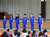 次に年男年女にあたる5・6年生が追い出したい鬼を発表しました。「忘れ物鬼」や「食べ過ぎ鬼」,「眠くなる鬼」などの発表がありました。