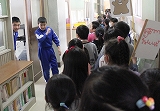 本日,新入学児童一日体験入学・入学準備説明会が行われました。新入生の案内役は1年生です。体育館で班分けを行った後,学校探検に行きました。ペアの子と手をつなぎ校舎内を探検しました。