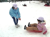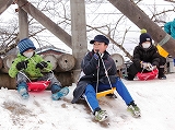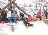 本日は「1年生と遊ぼう実行委員会」が1年生と「そり遊び」・「カルタ取り大会」を行いました。「そり遊び」では,そりの準備や片付けの他,そりを引いてあげたり,坂の上から順番にスタートさせてあげたりしました。1年生はとても喜んでいました。